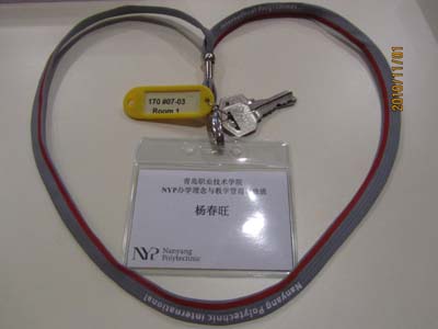 出入口门禁安全管理系统。10月26日上午,我们到达NYP的第一件事情,就是带队老师发给我们每人一把钥匙,附带着一张磁卡,磁卡两面分别印着NYP的英文详细地址和NYP办学理念与教学管理研修班学员的中文姓名。凭借这张磁卡,我们可以在晚上九点后进入无人看管的紧闭的NYP校门,可以进入NYP的各个教学楼,还可以免费进入NYP的游泳馆。