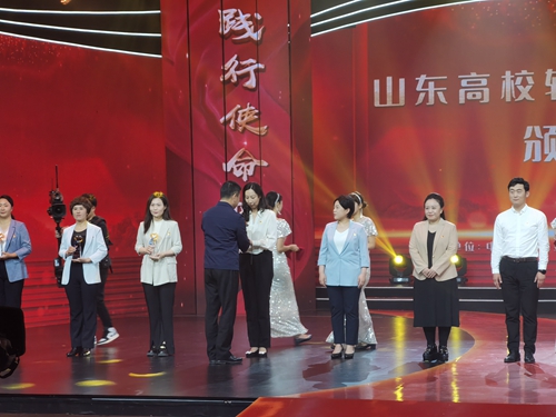 5月6日,由中共山东省委教育工委主办的2022年“山东高校辅导员年度人物”颁奖典礼在山东教育电视台举行。省委教育工委常务副书记,省教育厅党组书记、厅长李明,省委教育工委委员,省教育厅党组成员、副厅长仲红波出席颁奖典礼并为获奖辅导员颁奖。我校辅导员马小静荣获“山东高校辅导员年度人物”称号。