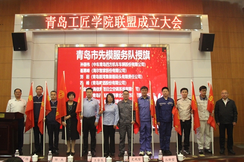 会上,邹杰为青岛海尔集团、中车青岛四方机车车辆股份有限公司、青岛海信控股股份有限公司、山东港口青岛港集团有限公司、青岛啤酒集团五家企业工匠学院授牌。史凤隆、丛新堂为中车青岛四方机车车辆股份有限公司、海尔智家股份有限公司、青岛前湾集装箱码头有限责任公司、青岛啤酒股份有限公司、海信集团日立空调系统有限公司等10家青岛市先模服务队授旗。邹杰、王金生共同为“青岛工匠学院联盟”揭牌。