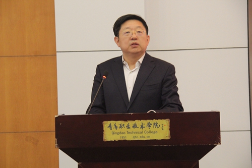 5月11日上午,青岛工匠学院联盟成立大会在我校举行,青岛市总工会党组成员、经审委主任邹杰,青岛市民营经济发展局副局级领导干部史凤隆,青岛市教育局职教处处长丛新堂,我校党委书记王金生出席大会,各院校、企业理事单位代表、青岛各区市总工会常务副主席和有关部门负责人、特邀企业工会负责人、青岛市先模服务队代表,我校各部门、二级学院负责人参加了大会。我校党委副书记、工会主席邢广陆主持大会。