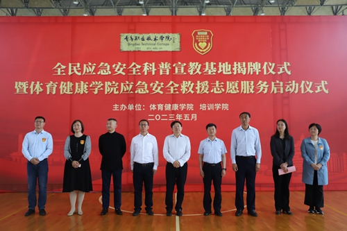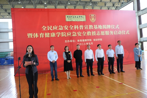 5月19日上午,“应急管理全民应急安全科普宣教基地”揭牌仪式暨体育健康学院应急安全救援志愿服务启动仪式在我校体育馆举行。我校党委书记王金生、党委副书记邢广陆,青岛市应急局宣传教育处处长刘志义、西海岸新区应急管理局党委副书记、局长马强,西海岸新区区委教育工委副书记、一级调研员王红卫,北京中安瑞民科技服务有限公司总经理杨洪升出席仪式,我校相关职能部门和体育健康学院相关负责人参加仪式。