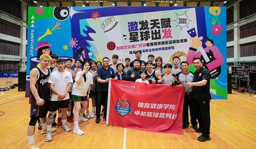刘畊宏团队与体育健康学院卓越篮球裁判社团合影