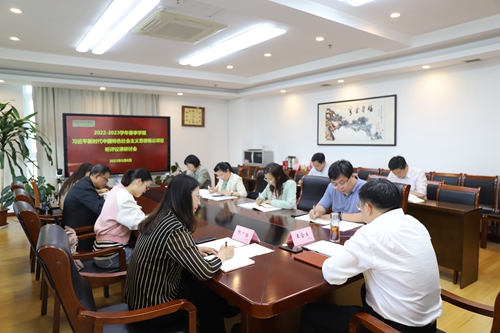 6月6日,学校党委书记王金生在厚德楼1102会议室主持召开了2022-2023学年春季学期“习近平新时代中国特色社会主义思想概论”课程听评议课研讨会。学校党委副书记邢广陆出席会议,组织部、宣传部、教务处、马克思主义学院、艺术学院相关负责人,马克思主义学院教研室主任及教师代表参加了会议。