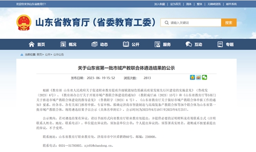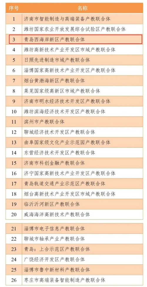 6月19日,山东省教育厅发布山东省第一批市域产教联合体遴选结果公示,我校牵头成立的青岛西海岸新区产教联合体成功入选。