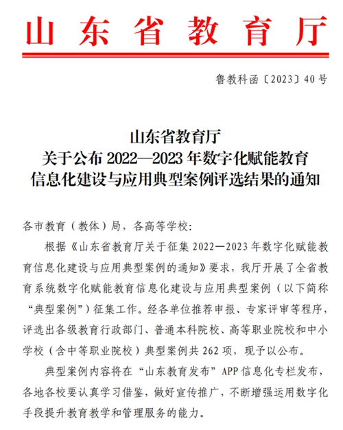 山东省教育厅关于公布2022-2023年数字化赋能教育信息化建设与应用典型案例评选结果的通知