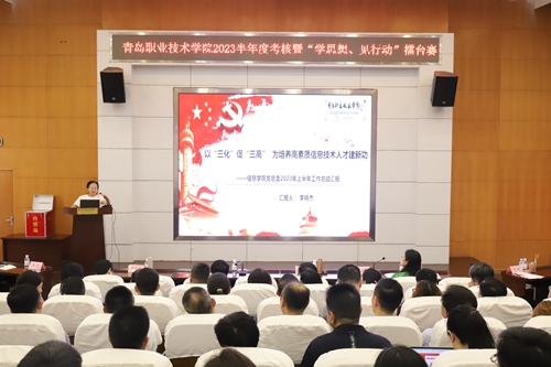为贯彻落实党的二十大精神,推进学习贯彻习近平新时代中国特色社会主义思想主题教育走深走实,7月7日-8日,学校在报告厅召开2023半年度考核暨“学思想、见行动”擂台赛。党委书记王金生,党委副书记、院长秦青松,党委副书记邢广陆,副院长张旭鹏、乔璐、刘宏出席。学校全体处级干部、教职工代表100余人参加会议。会议由秦青松主持。