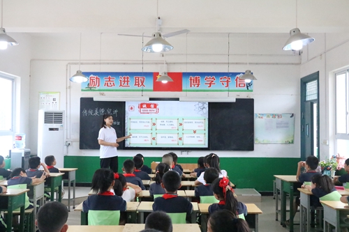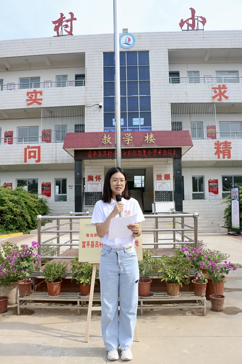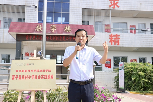 开班仪式现场进行了青岛职业技术学院旅游学院富平吕村小学社会实践基地揭牌,吕村小学及“立人圆梦”志愿服务队学生代表先后发言。旅游学院党总支副书记王耀辉表达了对富平团县委及吕村小学的感谢,表示旅游学院“立人圆梦”志愿服务队连续三年来到富平县开展“三下乡”社会实践,拓展了双方学生的视野和思维,增强了文化自信,希望志愿者珍惜此次“三下乡”社会实践机会,在服务中提升自己,用热心、真心、爱心、细心和耐心,为吕村小学的学生构筑一个安全、充实、难忘的暑期“文化梦想”。吕村小学校长张玮作总结讲话,表达了对远道而来的志愿服务师生的热烈欢迎,强调大学生与小学生的互动学习是思想的碰撞也是情感的传递,此次“三下乡”社会实践课程丰富、形式多样、主题突出,预祝大家在学习中共同收获一个充实快乐的“七彩假期”。
