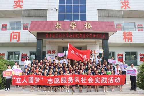 为深入推进学习贯彻习近平新时代中国特色社会主义思想主题教育,引导和帮助广大青少年学生上好与实践相结合的“大思政课”,7月11日,我校第一支“三下乡”社会实践队伍——旅游学院“立人圆梦”社会实践志愿服务团队在陕西省富平县吕村小学举办“七彩假期”夏令营开班仪式,顺利开启我校2023年大学生志愿者暑期“三下乡”社会实践活动。中国少年先锋队富平县事业发展中心主任师增亮,吕村小学、我校旅游学院相关负责人以及师生代表共计200余人参加了开班仪式。