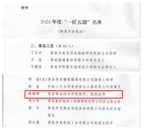 学校教师畅建辉获评“青岛工匠”称号