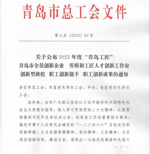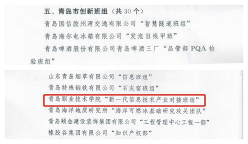 学校“新一代信息技术产业对接班组”获评“青岛市创新班组”称号