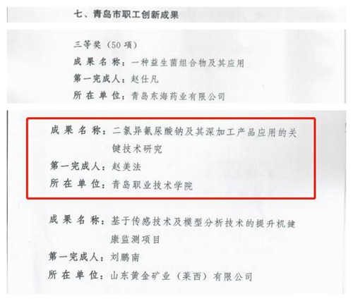 学校教师赵美法完成成果获评青岛市职工创新成果三等奖