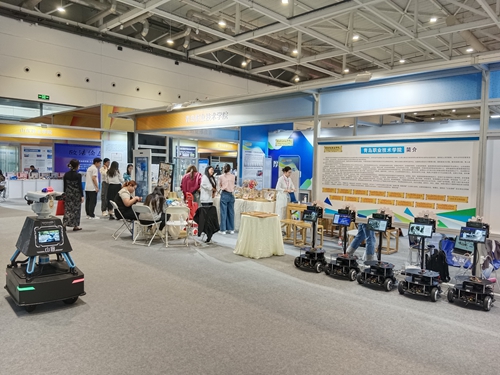 我校展区以展板、视频、实物、现场体验等形式,充分展现了学校深化产教融合、校企合作、科教融汇,协同育人的成果。展区共分为4个部分:旅游学院茶艺与茶文化专业学生茶艺师展示了优美的红茶冲泡技艺,同时展示了专业研发科技成果“北茶36”种苗茶树,冲泡了优质抗逆茶树品种选育品种茶开发试验产品——海青花果香红茶;生物与化工学院展示了“职”此青心博士团队依托学校“国家级海洋实验测试中心”“技能研发中心”,通过海藻多糖、寡糖及色素等海藻活性物质的提取研发出的化妆品等日用品;信息学院展示了专业教师团队在教学实训中指导学生根据场景进行硬件改装的“青职小将”等人工智能信息化机器人;艺术学院展示了由国家双高服装与服饰设计专业群十工坊之一的忆·簪花工作室设计制作的发簪、发钗、发梳、发饰、发冠等,吸引众多参展人员现场体验簪花的工艺制作。被吸引前来的参观者将学校展区围得水泄不通,“作品变商品,手艺成卖点,科研成果化为日用品”,获得参观者的一致盛赞。
