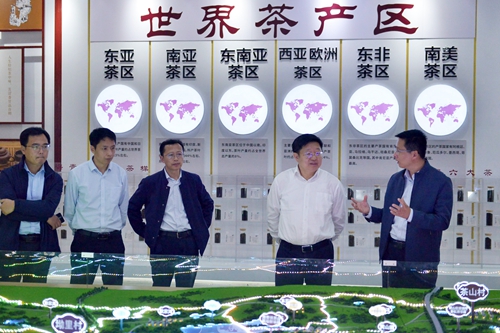 随后,王金生一行在刘莉莉、安百振的陪同下先后调研了北茶商街党校、共富茶食工坊、三乡人学院、KOL创意产业园、乡愁茶廊、茶村文化中心等项目,并到北茶科技园、海青茶山乡村振兴示范片区,实地考察北茶36等茶叶种植、品种培育情况。办公室、旅游学院相关负责人和茶艺与茶文化专业部主任参加了调研活动。
