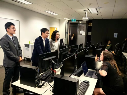 参访期间,ACBI-澳大利亚商务智能学院校长Fabio Mejia、教务主任Deirdre D’souza、外事负责人Giulia Caridi、招生负责人Camilo Vazquez、数字市场开发专员Mikey Ennis等热情接待了参访团。参访团走进校园,深入师生群体,详细了解教学、实训情况,了解学生学习、个人成长实际需求,走进教室、实训室、多功能室、教职工办公室实地考察办学条件。调研周边留学生住宿集中区情况,了解学生宿舍条件、收费等内容,与工作人员及中国留学生交流留学生入住情况。