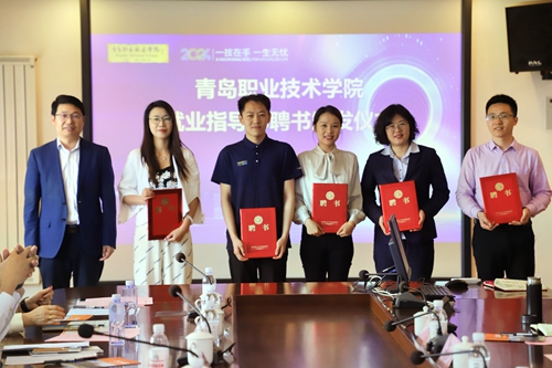 座谈中,秦青松对工信局、自贸片区、链主企业一行的到访表示欢迎。他表示,产教融合、校企合作是职业教育办学的“生命线”,政府对职业教育发展的关心和支持是学校高质量发展的“主心骨”,他介绍了学校坚持“融合化、智慧化、国际化”发展战略,深入实施“1+1+N”工程,培养符合产业需求、企业标准的高素质高技能人才的特色做法,并介绍了学校下一步的发展规划,希望能与链主企业在青岛市新兴产业、优势产业发展新质生产力的过程中不断加深产教融合、校企合作,聚焦教育部提出的“一体、两翼、五重点”职业教育改革重大举措以及“五金”建设,开展有深度、有广度、有高度的合作。会上,秦青松还为校外就业指导师颁发了聘书。