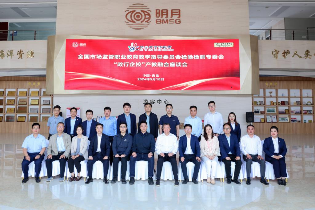 按照《教育部等十部门关于办好2024年职业教育活动周的通知》,5月18日,由全国市场监管职业教育教学指导委员会检验检测专业委员会主办,中国检验检测学会、青岛市市场监督管理局、青岛西海岸新区市场监督管理局、青岛检验检测认证协会支持,青岛职业技术学院和青岛明月海藻集团承办的“2024年职业教育活动周”之“‘政行企校’产教融合座谈活动”在青岛西海岸新区举行。专委会秘书长、中国检验检测学会副会长兼秘书长夏扬,专委会副主任委员、国家市场监管总局认可检测司能力验证处处长郭栋,国家市场监管总局专业人才中心网络教育部副主任陈国栋,青岛市市场监督管理局一级调研员、认证认可处处长李新慧,青岛西海岸新区市场监督管理局党组书记、局长徐春亮,青岛明月海藻集团副总裁张德蒙、党委副书记杨晓菁,以及政府、协会、企业代表参与活动。我校党委副书记、校长秦青松,党委委员、副校长刘宏出席此次活动。