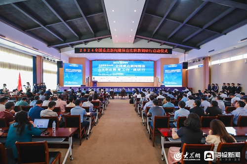 仪式上,山东省教育厅总督学王志刚通过视频的形式发表讲话,张天保、贠瑞虎共同见证大众网•海报新闻职业教育频道上线,李寿冰为本次活动的媒体代表授旗,五所高职院校领导共同按下“启动键”,2024山东职教媒体调研行活动正式开启。启动仪式后,举行了山东职业教育高质量发展研讨会,与会领导、专家围绕“职业院校如何赋能新质生产力发展”“新一轮‘双高计划’的实施路径和着力点”“如何增强职业教育适应性和吸引力”等话题进行了深度研讨。