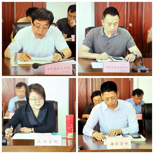 会上,党委副书记邢广陆、副校长乔璐、马克思主义学院院长孙振超、国际交流与合作处处长李震、旅游学院院长王媛媛、海尔学院党总支副书记杨春旺分别围绕学习内容,结合工作及思想实际,交流学习体会,畅谈落实举措。