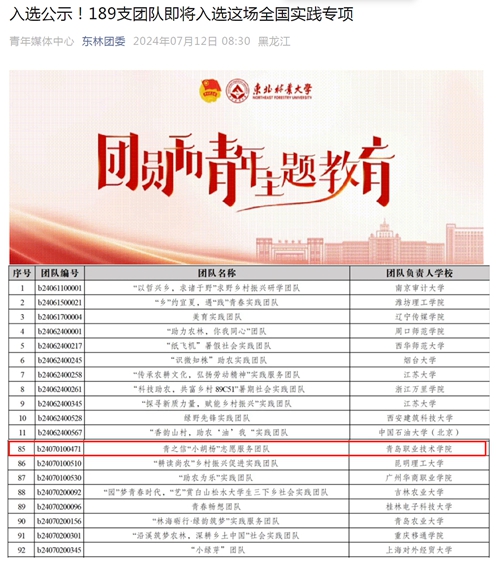近日,东北林业大学团委公布入选2024年全国大学生暑期社会实践“自讨苦吃担使命 农林报国当先锋”专项活动的团队名单,我校信息学院青之信“小胡杨”志愿服务队光荣入选。