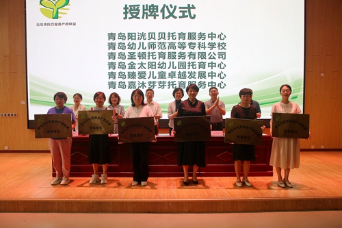 与会领导为新加入“青岛托育服务产教联盟”的理事单位授牌