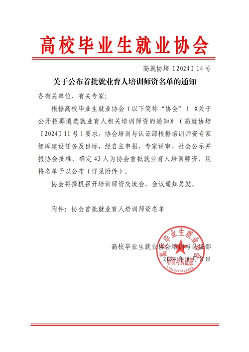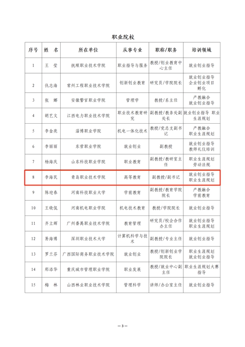 经过自主申报、专家严格评审及社会公示等多个环节,最终确定了43名优秀专家作为协会首批培训师资,其中,普通本科高校15人、职业院校15人、企事业单位13人。此次入选,不仅是对李海民副教授在职业生涯规划和就业创业指导领域深耕细作的高度认可,也是对我校就业创业与生涯规划教育工作的充分肯定。学校将以此为契机,依托协会平台促进与兄弟院校的经验分享与合作共赢,持续提升我校职业生涯规划和就业创业指导师资水平,优化升级课程体系建设,建好用好就业指导阵地,为学生提供高质量、个性化的就业指导服务,助力毕业生更充分更高质量就业。