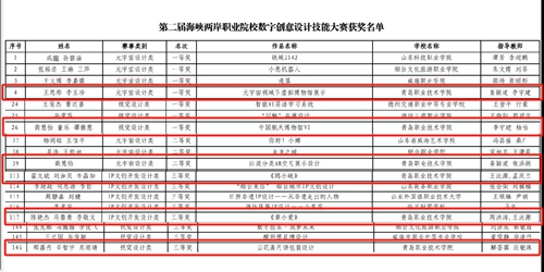 8月18日,由山东省教育厅、山东省人民政府台湾事务办公室、潍坊市教育局、潍坊市人民政府台湾事务办公室联合举办的第二届海峡两岸职业院校数字创意设计技能大赛在潍坊举行。我校艺术学院6件作品入围决赛,斩获一等奖2项、二等奖1项、三等奖3项。