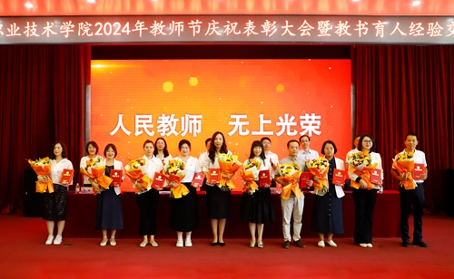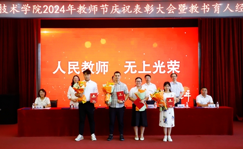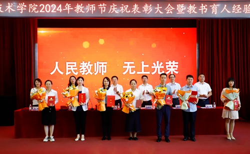 王金生在庆祝表彰大会上讲话。他首先代表学校党委向受表彰的优秀团队和个人表示祝贺,向全体教职员工以及为学校建设发展作出积极贡献的老教师、老职工、老领导和产业教授、兼职教师致以节日的问候,并对新入职教师表示诚挚的欢迎。他从坚持立德树人思想引领、党的建设全面加强,坚持内涵发展提质增效、办学实力稳固提升,坚持以人为本保障民生、办学条件持续改善,坚持人才强校群雁齐飞、教师队伍持续优化四个方面总结了一学年来学校改革发展取得的各项成绩,并结合学习贯彻党的二十届三中全会精神和此次教师节主题,提出三点要求:一是,师德为先,做教书育人的模范,当好学生锤炼品格的引路人、学习知识的引路人、创新思维的引路人和奉献祖国的引路人;二是,修能致用,做乐教爱生的模范,每一位教师要准确把握教育科技人才一体化发展战略意义、准确把握高素质专业化教师队伍建设的精神要义,立足“三教改革”,深化“四个结合”,做好“五金建设”;三是,与时俱进,做终身学习的模范,以终身学习的思路关注学生发展,以终身教育的方法推进教学改革,共同建设“人人皆学、处处能学、时时可学”的学习型社会、学习型大国。