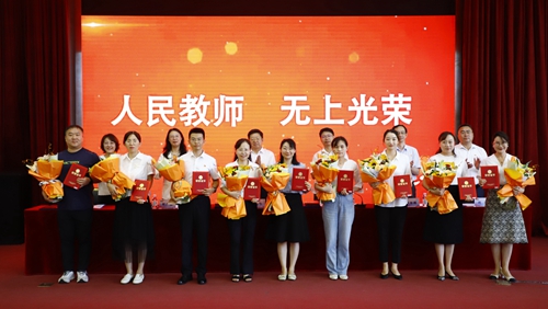 庆祝大会在国歌声中拉开帷幕,全体教师进行了争做“四有”好教师、为党育人为国育才的庄严宣誓。大会表彰了2023-2024学年度获得国家、省、市、校各级各类突出成就的优秀教师和团队。部分新老教师代表举行了隆重的结对拜师仪式。