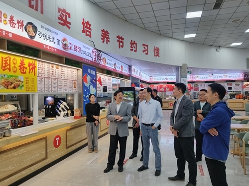 王金生强调,饮食服务工作关系到师生的身体健康和生命安全,要压紧压实各方责任,高度重视安全工作,以时时放心不下的责任感,事事落实到位的执行力,确保“万无一失”。他对食堂餐饮工作提出相关要求,一是强化风险隐患排查,加强对用电、用气及设施设备运行情况的日常巡检,及时发现问题隐患,立即整改到位;二是加强信息化建设,提升智慧监管效能,推进智慧餐厅运管平台、智慧用电安全检测平台等建设,进一步提升食堂安全设施设备配置;三是切实守牢食品安全底线,落实食品安全卫生制度,加强原料采购、加工制作、餐具洗消等重点环节管控,守牢每一道防线;四是切实提升质量意识和服务意识,为学生提供丰富多样、营养健康的餐品,努力满足师生多样化餐饮需求,为师生打造良好的就餐环境和就餐体验。