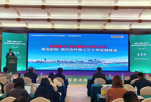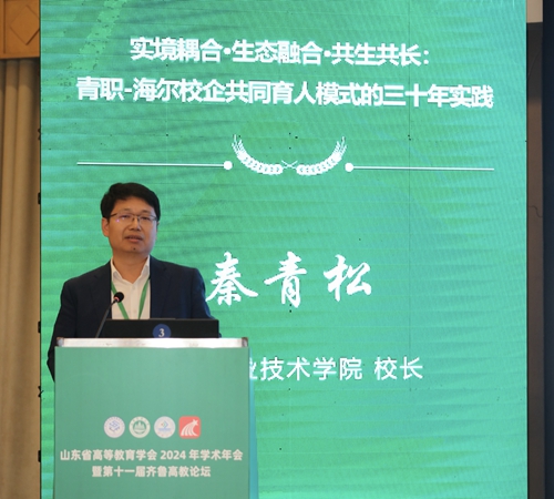 10月26日,山东省高等教育学会2024年学术年会暨第十一届齐鲁高教论坛在泰安举行。我校党委副书记、校长秦青松参加会议,并在高职分论坛以“实境耦合·生态融合·共生共长:青岛职院—海尔合作育人三十年实践体会”为主题作典型报告。