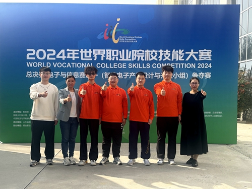 10月27日至30日,2024年世界职业院校技能大赛总决赛争夺赛电子与信息赛道一(智能电子产品设计与开发小组)赛项在烟台职业学院举行,共有61支参赛队参赛。经过激烈角逐,由我校信息学院教师王靓、修娜指导的工业互联网技术专业学生周云飞、刘浩、周群振、唐显邦四名学生荣获银奖。