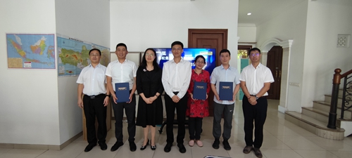 邢广陆针对赛轮印尼工厂人力资源构成和产业链长的特点,介绍了我校专业布局及“校随企出、产教同行”国际化办学的模式和做法,就印尼“班•墨学院”建设进行了交流,就校企共建育训中心、研发中心、实践中心等组织架构,共同开发工匠课程体系、课程资源,利用“线上+线下”的混合式教学,打造混合式的培训团队等具体的规划和任务达成共识。随后,邢广陆与王电营共同为青职-赛轮印尼“班•墨学院”揭牌,邢广陆代表学校向工厂政委、我校优秀校友牛金来颁发了印尼“班•墨学院”产业教授的聘书,为杨威、Jelita颁发了兼职教师聘书。