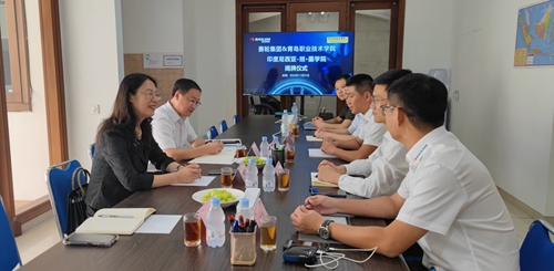 座谈交流中,王电营结合印尼三宝垄市与中国的渊源,印尼建厂的优势,系统介绍了工厂的规划和发展情况,感谢了我校对工厂建设初期“人力先行”行动的支持,他从语言能力培养、专业与产业对接、身体素质与综合素养以及产学研一体化四个方面提出了相关合作计划。