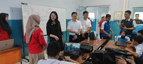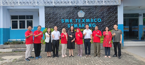 在泰克斯玛科基金会下属院校三宝垄泰克斯玛科职业学校,邢广陆一行与基金会公共管理负责人Sinta和三宝垄泰克斯玛科职业学校副校长Kristianti等进行了深入交流。邢广陆回顾了两校的前期交往,介绍了我校国际化办学的探索与实践做法,及共建赛轮海外“班•墨学院”工作开展情况。她表示,三宝垄泰克斯玛科职业学校作为三宝垄市知名的中职院校,是赛轮印尼工厂在印尼重要的合作院校,两校在师资培养、优秀学生学历提升等方面合作空间广阔,校-企-校联合,将为赛轮印尼工厂培养更多一线技术技能人才。邢广陆一行还与基金会商讨共建课程标准,并在基金会所属院校推广应用,为赛轮培养更多本土人才等合作任务和愿景达成一致。我校与赛轮印尼工厂分别与该校和基金会签署了三方合作备忘录。邢广陆一行还通过讲座、实地参观等,与师生进行了交流,深度调研了学校专业设置、实训条件和学生基础。
