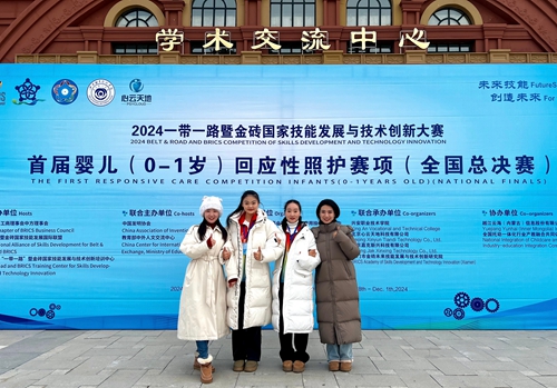 11月28日至12月1日,2024年“一带一路”暨金砖国家技能发展与技术创新大赛——首届婴儿(0-1岁)回应性照护赛项全国总决赛在内蒙古乌兰浩特兴安职业技术学院顺利举行。高校组来自全国各地的144位选手参加比赛,经过激烈角逐,我校教育学院婴幼儿托育服务与管理专业2023级5班学生刘艳以总分第一名的成绩荣获一等奖,2023级4班学生董婧琦获二等奖。