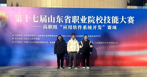 12月8日,第十七届山东省职业院校技能大赛“应用软件系统开发”赛项在淄博举办,来自全省的57支队伍参加了此次比赛。经过激烈角逐,由我校信息学院软件技术专业学生彭浩东、严松岳、王忠洋三名学生组成的参赛队在徐占鹏、刘园园两位教师的指导下获得团体一等奖。
