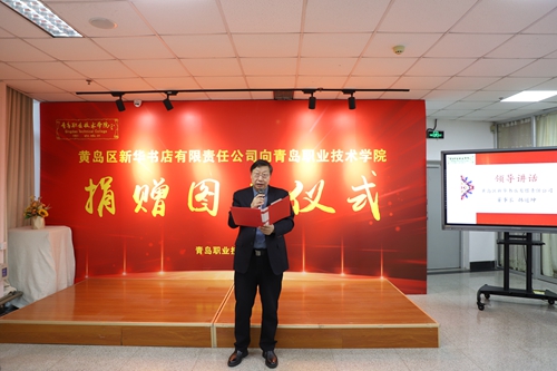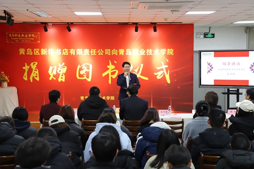 12月11日下午,黄岛区新华书店有限责任公司图书捐赠仪式在校图书馆举行。我校党委书记秦青松、副校长乔璐,黄岛区新华书店有限责任公司董事长韩道坤、总经理徐从杰、部门经理韩岗出席捐赠仪式。