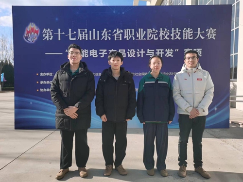 12月14日至15日,第十七届山东省职业院校技能大赛高职组“智能电子产品设计与开发”赛项在烟台职业技术学院开赛。此次大赛为师生同赛,共有来自全省36支代表队的参赛选手进行线下竞技。由我校信息学院工业互联网技术专业学生尤悦悦、刘飞翔、陆经纬以及指导教师朱炳瑞组成的团队,经过激烈角逐,以总分第二名的成绩荣获一等奖。