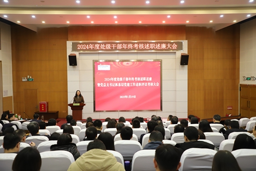 1月19日,学校在报告厅召开2024年度处级干部年终考核述职述廉暨党总支书记抓基层党建工作述职评议大会。党委书记秦青松出席会议并讲话,学校党委领导班子成员、全体处级干部以及教职工代表共计120余人参会。会议由党委副书记、校长邢广陆主持。