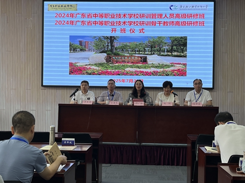 开班仪式上,全体人员观看了广东轻工职业技术大学和青岛职业技术学院宣传片,通过影像深入了解两校的办学风貌与发展成果。邢广陆对广东轻工职业技术大学给予的信任和支持致以诚挚谢意,对参训教师表示热烈欢迎。她简要介绍了我校的建设发展、办学成效和师资培训工作开展情况,希望通过培训交流,能够凝聚更多共识,搭建起职教本科、高职、中职一体化发展的协作平台,为技能人才的成长铺就更顺畅的道路。参训教师代表、茂名市第二职业技术学校党总支书记古建泉对主办校和承办校表示衷心感谢,表示参训人员将珍惜学习机会,带着问题学,结合实际深入思考、学以致用。李家荣对我校在此次培训中的精心筹备和辛勤付出表示感谢,介绍了对本次研修的用心设计与更高要求,希望参训教师们及时转换心态,调整状态,严格遵守学习纪律,确保圆满完成培训任务。