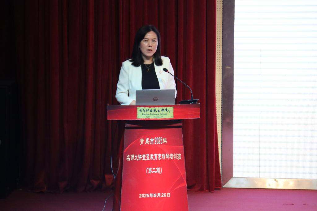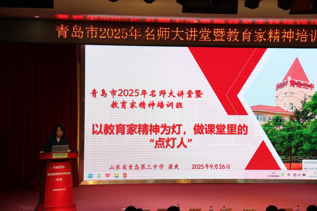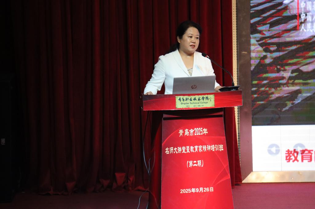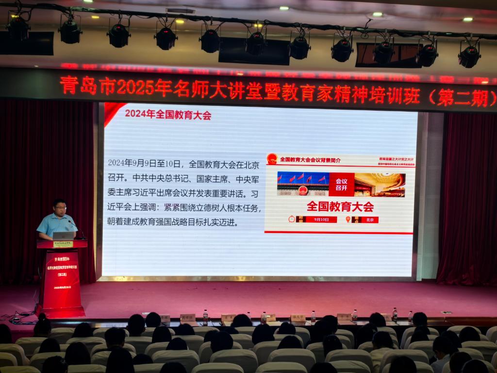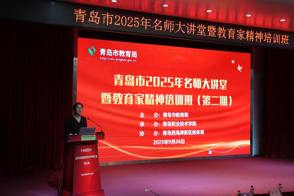 9月26日下午,由青岛市教育局主办、我校承办的青岛市2025年名师大讲堂暨教育家精神培训班(第二期)在我校艺术厅举行。青岛市教育局教师工作处二级调研员张文学,我校党委委员、教师工作部部长田秀丽,西海岸新区选派的各学校中层及以上干部、骨干教师,我校近两年入职的新教师、各二级学院党总支成员及教师代表等300余人在主会场参加了此次培训。西海岸新区各学校部分教师在分会场依托“蓝睛客户端”进行线上收看。据统计,线上收看人数近22万人。