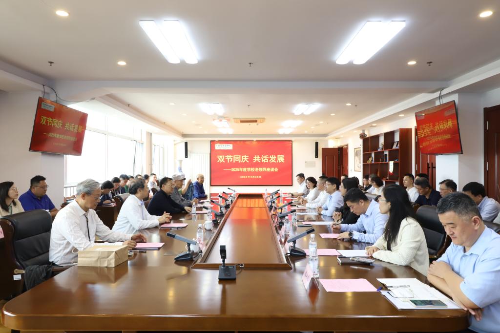 在中华人民共和国成立76周年与中秋节即将来临之际,9月28日上午,学校在厚德楼1110会议室召开“双节同庆共话发展”2025年度学校老领导座谈会。学校原党委书记、一级巡视员刘鹏照,原职工大学校长、教育学院院长尹吉会,原党委书记宋煜、谭森德,原院长史忠健,原纪委书记刘伟等六位老领导应邀出席;原院长覃川因日程原因,提前返校进行了交流指导。党委书记秦青松,党委副书记、校长邢广陆,党委委员、副校长刘宏及党委班子成员出席会议,各职能部门及二级学院主要负责同志参加座谈。座谈会由秦青松主持。