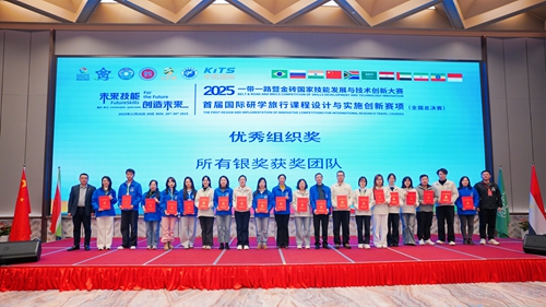 11月27日至30日,2025“一带一路”暨金砖国家技能发展与技术创新大赛首届国际研学旅行课程设计与实施创新赛项全国总决赛在重庆旅游职业学院举办。本次大赛吸引全国122支参赛队伍、691名师生同台竞技,我校旅游学院研学旅行管理与服务专业孙阳阳、焦雨晨、王嘉仪、于金志4名学生组成的参赛团队获得职教组银奖,指导教师王媛媛、刘慧获评“优秀指导教师”,我校获评“优秀组织奖”。