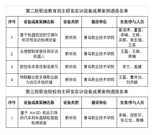 近日,中国职业教育学会发布了《关于公布第二批职业教育自主研发实训设备成果案例遴选名单的通知》(职教学会〔2025〕33号)和《关于公布第三批职业院校自主研发实训设备成果案例遴选名单的通知》(职教学会〔2025〕34号),我校海尔学院推选的《基于机器视觉的空调外机安规自动检测设备》等5项案例成功入选。