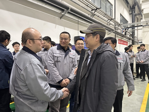秦青松参观海克斯康生产场景并与我校毕业生亲切交谈