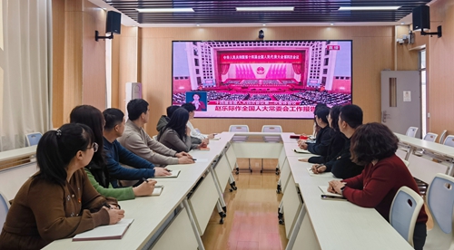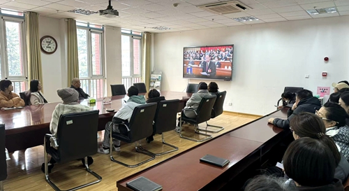 培训学院教职工集中观看全国两会直播
