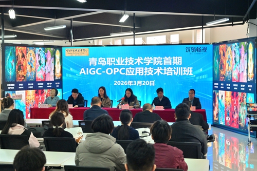 邢广陆在致辞中表示,此次校企共建培训班是学校响应青岛打造北方OPC先行示范城战略、推动AIGC与OPC深度融合的具体实践,学校将以产教融合为抓手,精准对接产业需求,同时希望校企深化全方位合作,共育AIGC-OPC复合型人才。刘鹏在致辞中介绍了企业的资源与平台优势,表示将为培训班提供全方位的实战教学支持,与我校携手为青岛产业发展赋能。参训学生代表发言,表示将珍惜学习机会,认真钻研实战技能,努力成为符合产业需求的专业人才,为青岛文化科技产业发展贡献力量。仪式后,校企双方嘉宾与参训学生合影留念,并就后续合作方式、规模与深度进行了深入交流。