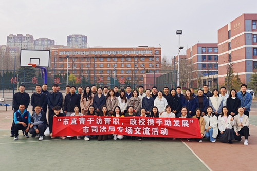 3月26日,我校与青岛市司法局联合举办“市直青干访青职 政校携手助发展”市司法局专场交流活动。青岛市司法局党委委员、政治部主任洪迪率青年干部与干警来访,校党委书记秦青松,党委副书记、校长邢广陆,党委委员、副校长张旭鹏出席活动。学校办公室、人事处、团委、培训学院、体育健康学院、马克思主义学院负责人,师生代表参加活动。