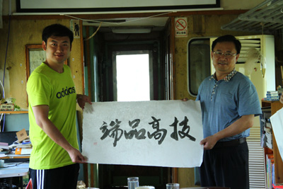党委书记刘鹏照向志愿者赠送亲笔题字“技高品端”