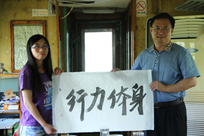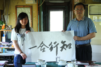 党委书记刘鹏照向志愿者赠送亲笔题字“知行合一”